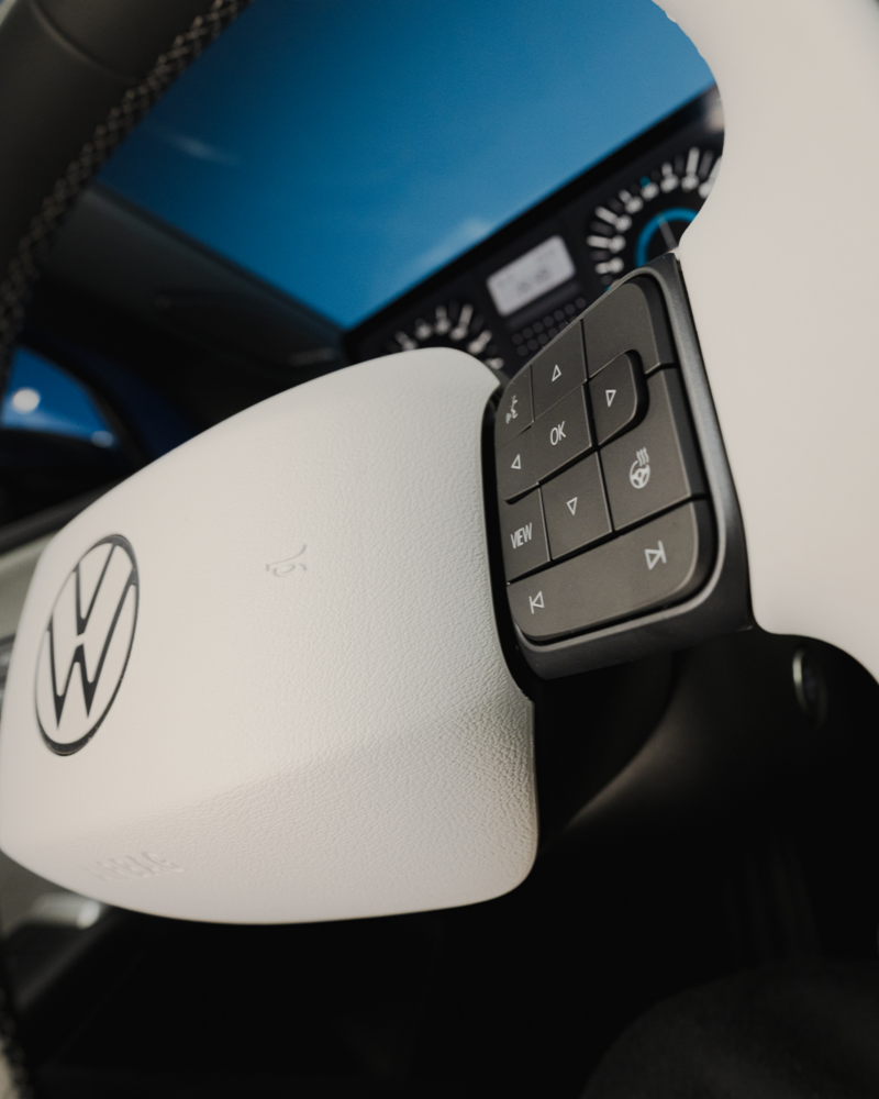 Zodra je gaat zitten, voel je het: dit is een echte Volkswagen. Geen gedoe, maar gewoon de auto bedienen met fysieke knoppen. Het interieur is gemaakt van zachte, gerecyclede stoffen die prettig aanvoelen en lang meegaan. Met de Digital Cockpit (26 cm) en het grote touchscreen (33 cm) heb je alles helder in beeld. En voor de fans: je kunt je dashboard zelfs de ‘retro look’ van de allereerste Golf geven. Zo brengen we het beste van toen naar de wereld van vandaag.